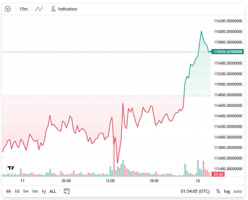 Bitcoin made an early move on Friday. It surpassed $116,000, the highest level in 3 weeks after a daily increase of 1.5%.