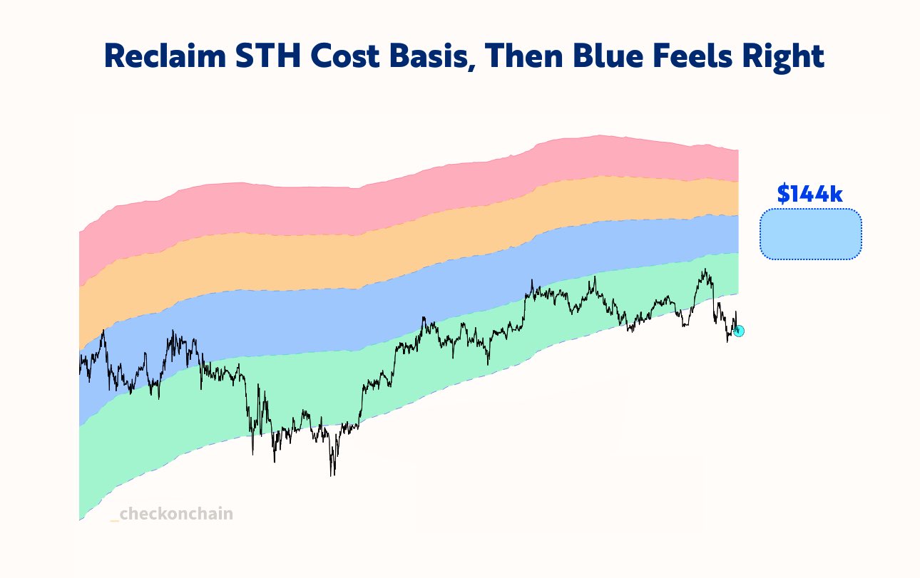 “If BTC can reclaim the short-term holder cost basis at $113k, a move into the blue band of $130k – $144k feels right,” It was said.