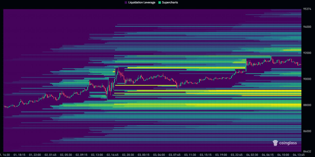 “Largest liquidity cluster in close proximity sits below the yearly open around the $88K area,” Daan Crypto Trades explains in one his blogs: latest X posts CoinGlass, a monitoring tool.