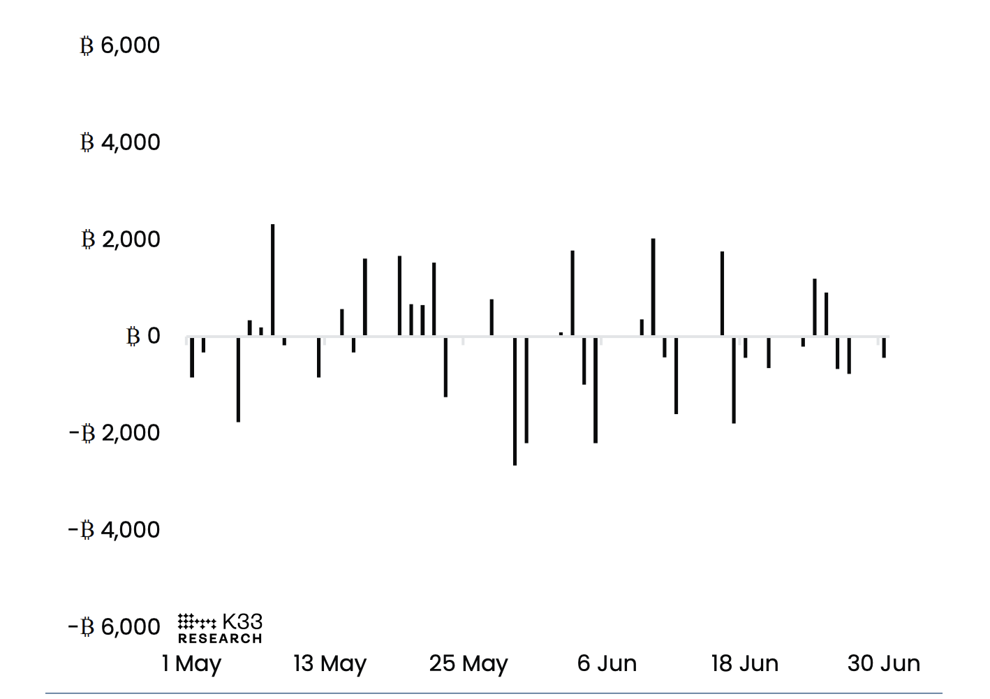Together with negative ETF flows, “limited leveraged ETF flows signal low leverage and modest yields,” K33 Research said in its latest Ahead of the Curve report, adding: