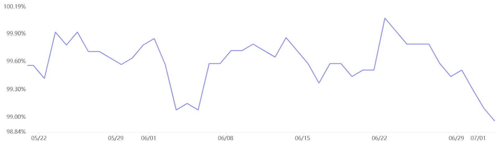 The Bitcoin futures premium was below the neutral 5% threshold on Wednesday. The small increase of 4% from Monday continues a trend started on June 11 when the indicator was last in bullish territory. It coincided with Bitcoin’s test at the $110,000 mark.