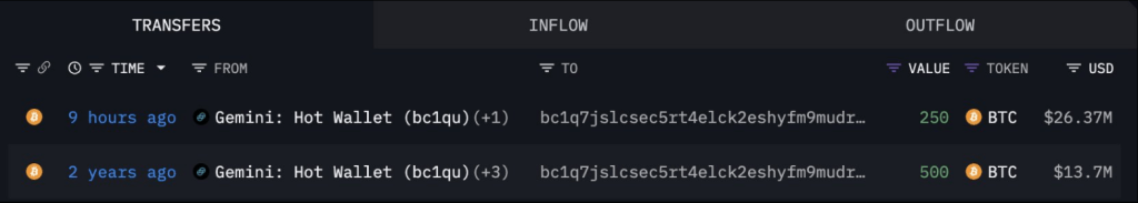 Lookonchain’s data indicates that both are true whale In 2022, when Bitcoin traded at $27,400 per coin, the whale pulled out 500 BTC from Gemini, which was worth over $14 million. BTC has hovered around $105,000 for the past few months, and now, this whale holds a gain that is unrealized of nearly $39 million.