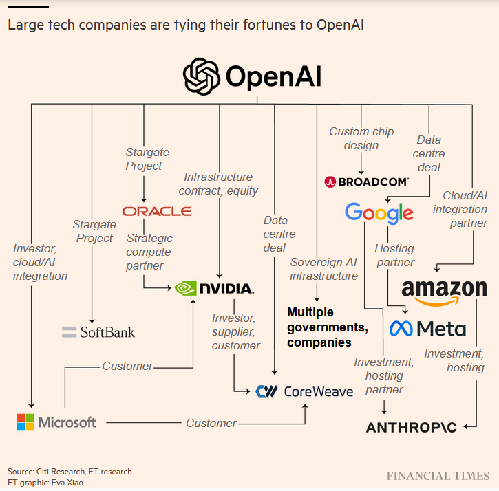 It creates a loop of investment among a small group AI companies. OpenAI signed a $300 Billion deal, as an example. with Oracle.