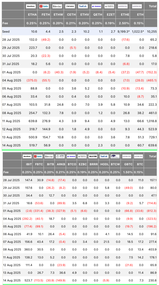 BlackRock’s iShares Bitcoin Trust added. The largest US Bitcoin spot exchange-traded (ETF) in the US, iShares Bitcoin Trust is managed by BlackRock. over $500 million in BTC It’s Thursday The Ether is ThursdayETH( ) added the same amount of money, defying short-term market trends.