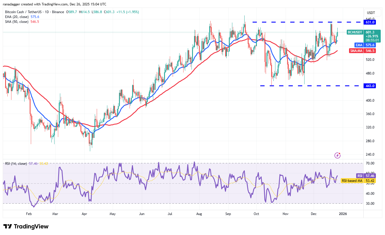 Bitcoin CashBCH) turned up from the 20-day EMA ($575) on Thursday, indicating positive sentiment.