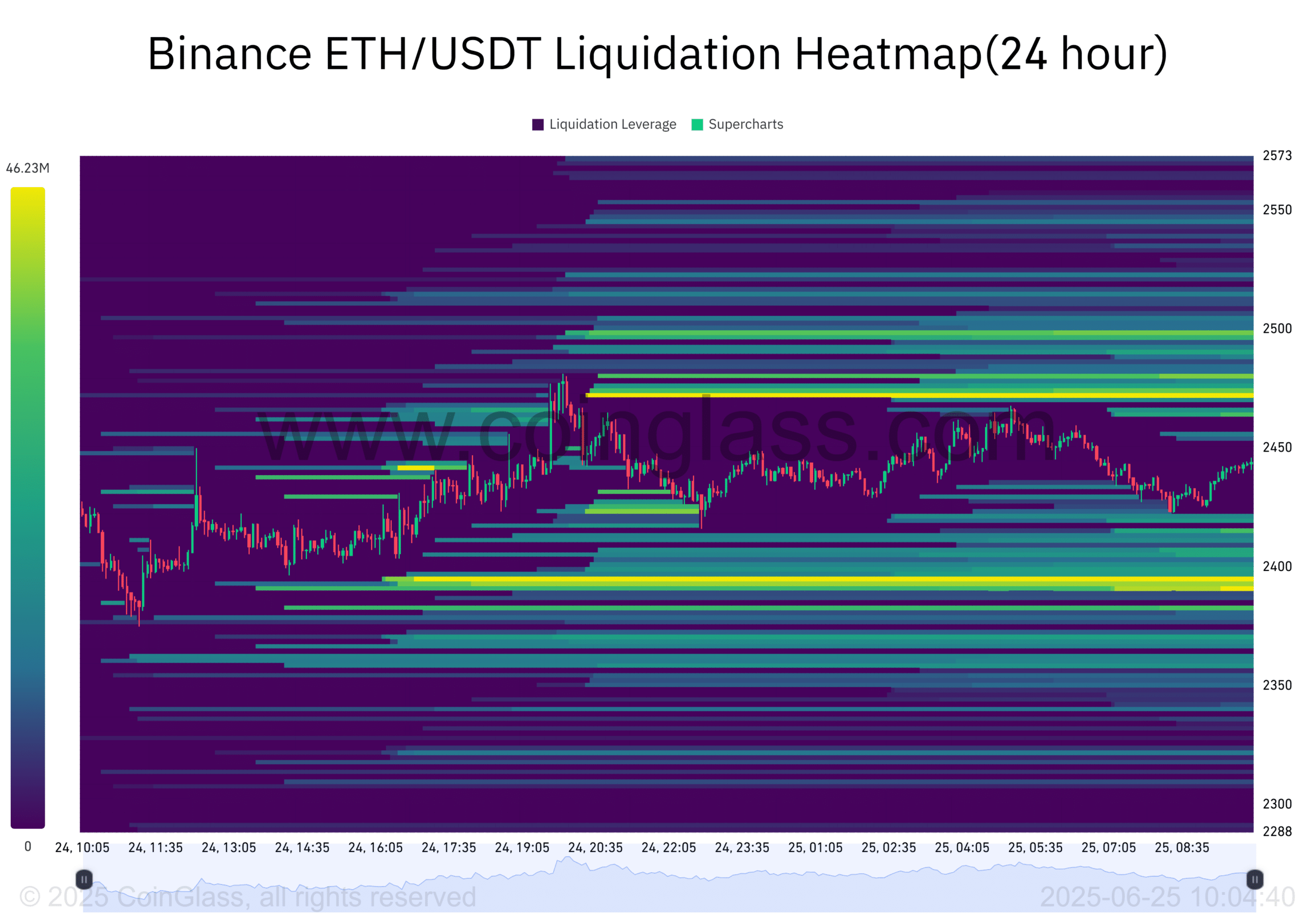 Coinglass reported that ETH’s Liquidation Map displayed a tightly stacked leverage of $2,500 to $2,550. The zones have a double purpose.