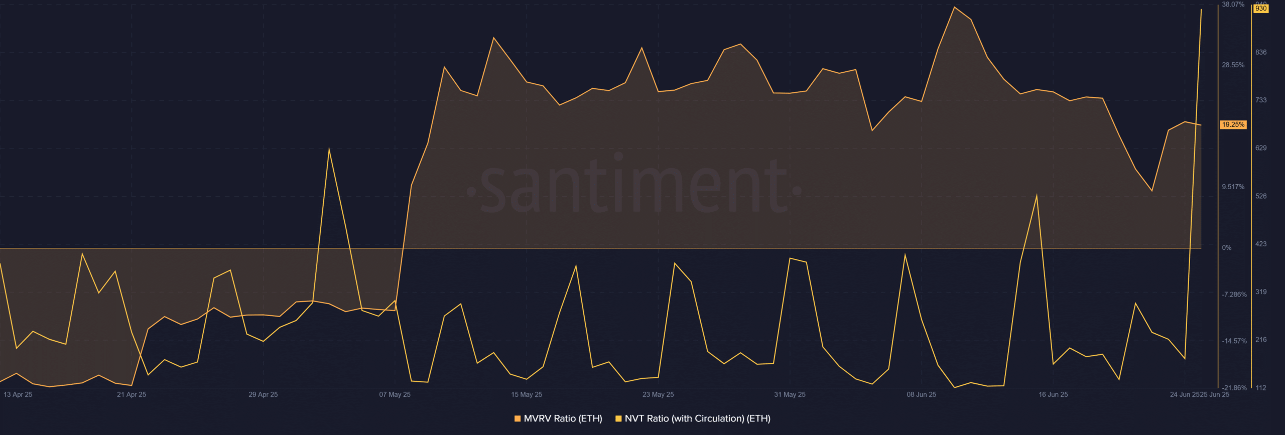 Ethereum’s MVRV Rate climbed up to 19.25%. It indicates that many holders still have gains they are not able to realize.