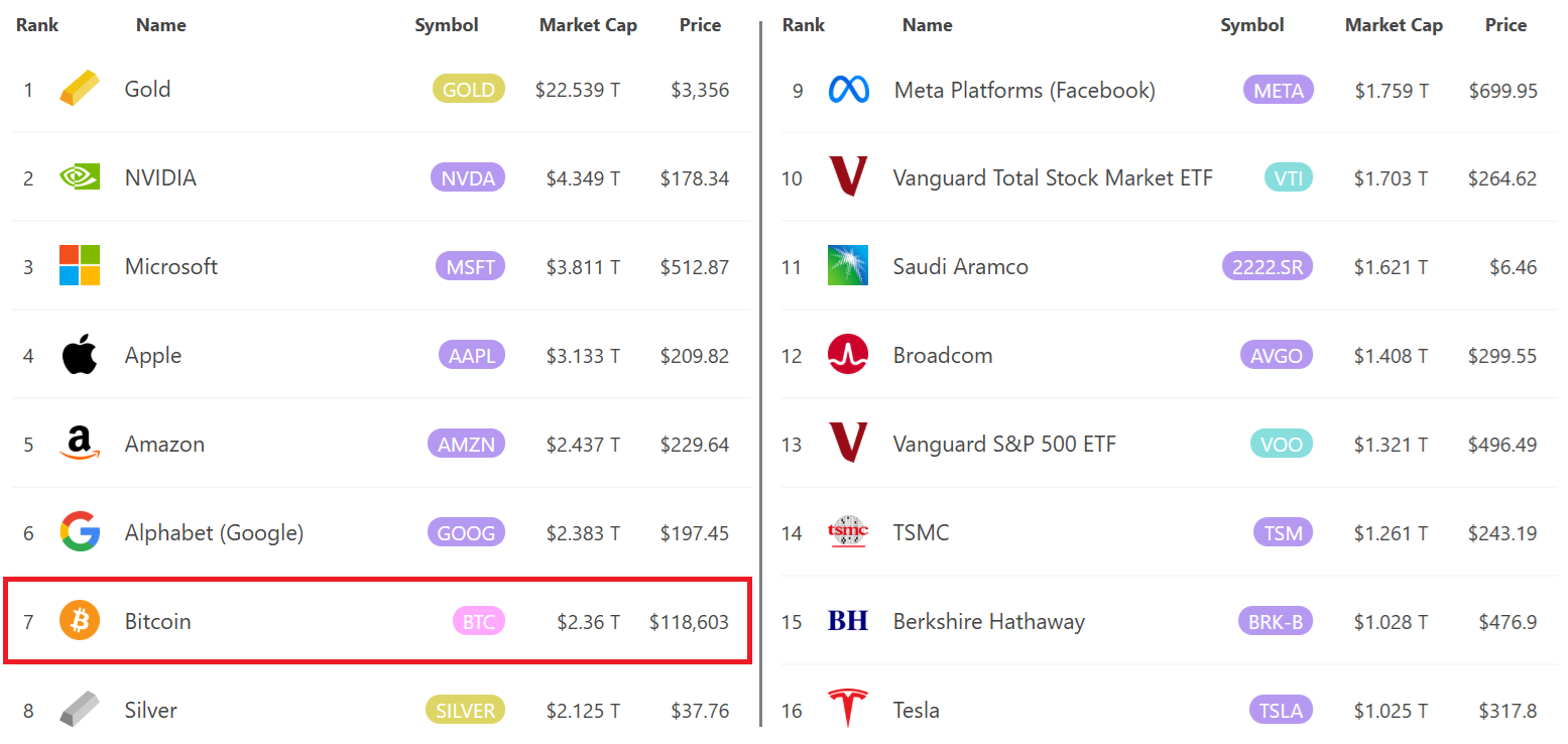 On first look, $140k Bitcoin seems ambitious. It would mean a 19% hike from current price of $117.600. This would still represent a market cap of $2.78 trillion, which is 87% less than the $22.5 trillion value for gold. Nvidia, the current world’s largest company with a $4.36 billion market cap, is a good comparison.