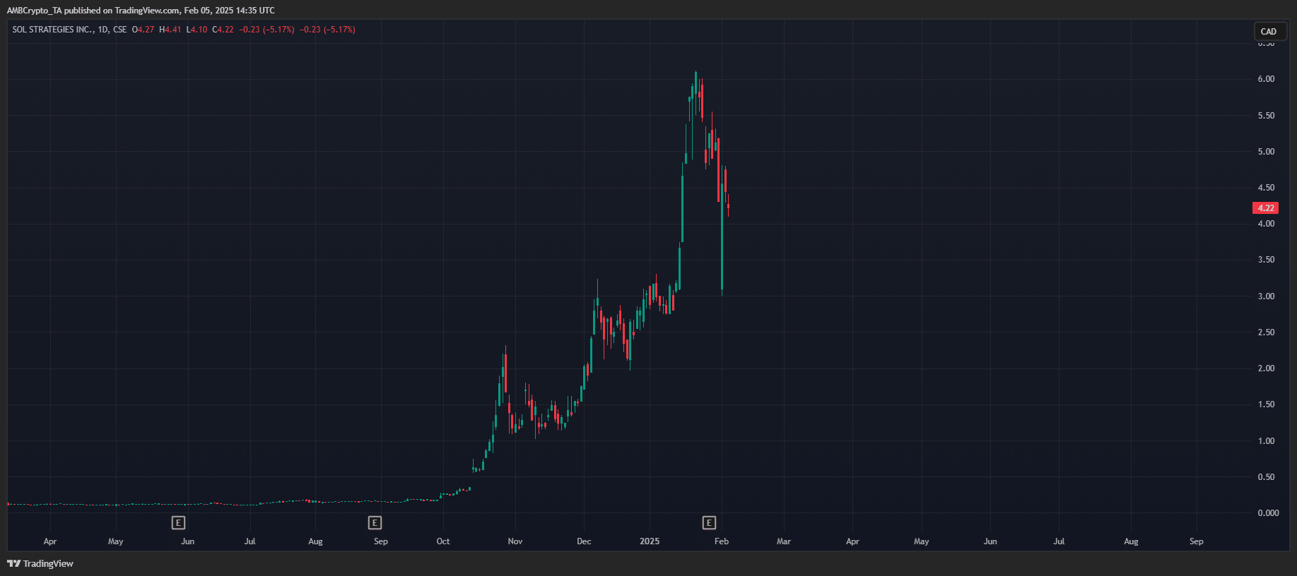 Sol Strategies might be forced, if Solana’s stock price does not rise, to unload their SOL positions, which could damage its SOL share. This is a game to be watched.