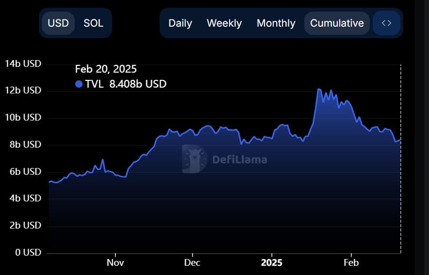 SOL’s Total value locked (TVL), which measures the network’s total value, has also declined. It is now $8 billion instead of $12 billion. TVL and Market Cap decline suggest massive capital outflows from the network. The decline in liquidity could cause higher volatility, and even slippage.