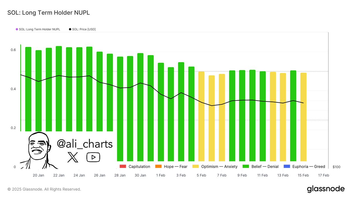 The time this was written is the current date. Solana’s (SOL) Nupl (Long-Term Holders Net Unrealized Gain/Loss)) alluded a time of growing anxiety for long-term investment.