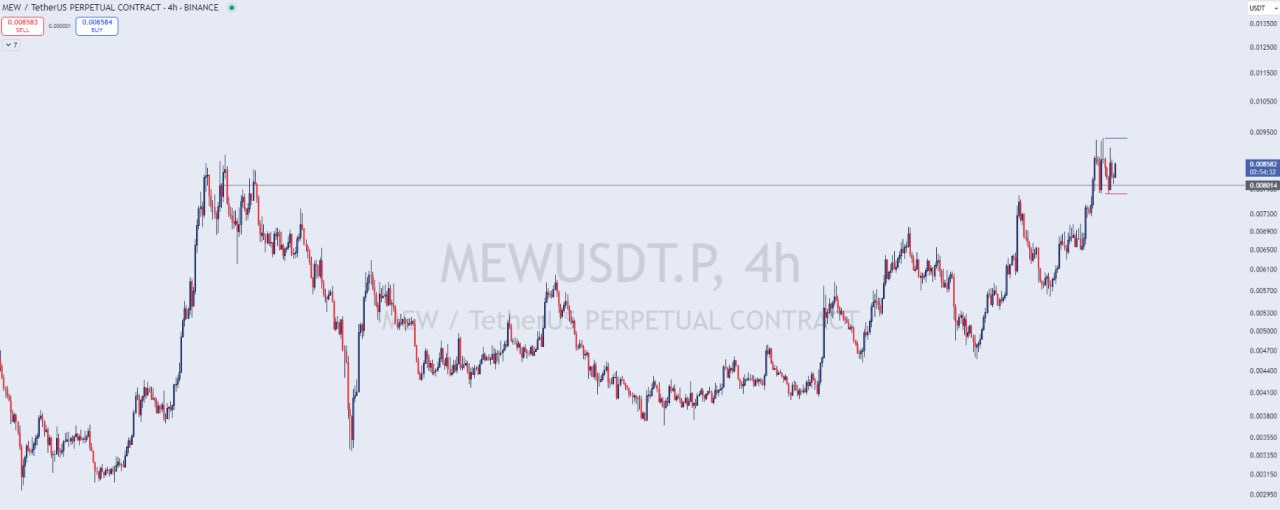 MEW was trading at $0.0086 as of the time this article is written, down more than 4% for the day.