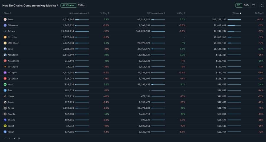This analysis shows that the underlying cause of this phenomenon is a lack of dietary fiber. TRON The chain has surpassed other chains that have been prominent in the marketplace over the past seven days. This includes Ethereum, Solana Bitcoin and BNB Chain.