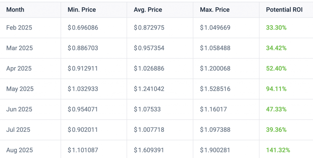 Cardano’s market may have to wait a little longer before the asset reaches a peak of $2. CoinCodex predicts that Cardano’s price will range from $0.696086 up to $1.900281 by 2025. This would result in a $1.18845 average annual price. Comparing the rates at present, it is possible to get a 141.32% return. This is an increase from the recent prices, but it’s still below $2.