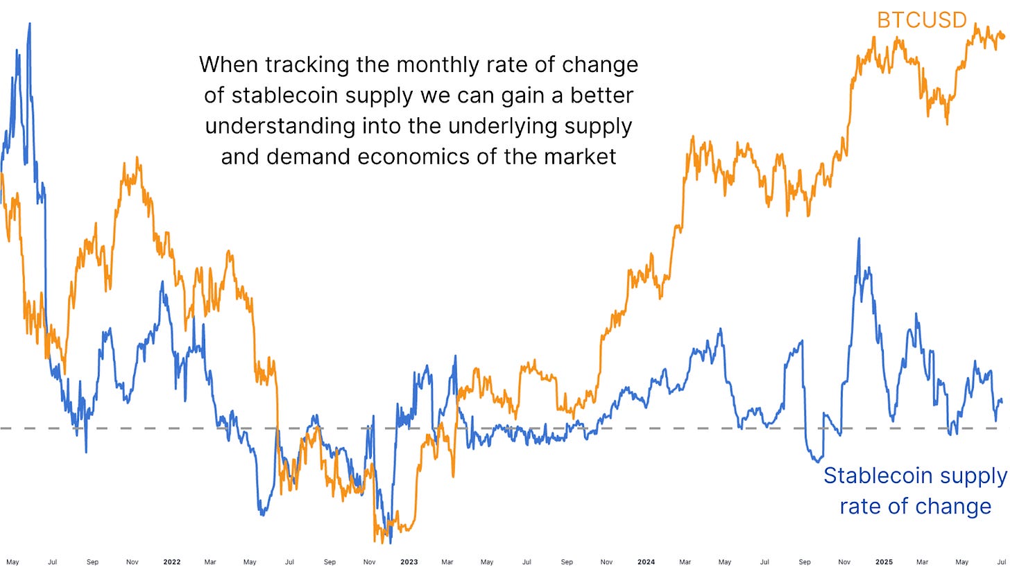 Stablecoin Rate-of-Change Metric provides Clarity for Intra-Cycle Positioning. Global M2 Growth aligns to long-term Bitcoin Trends. Every analyst should have this in their toolkit. It has been remarkably successful to use a simple approach, like looking for crossovers over zero for the 28-day change rate for accumulation and consider scaling out when there are extreme spikes.