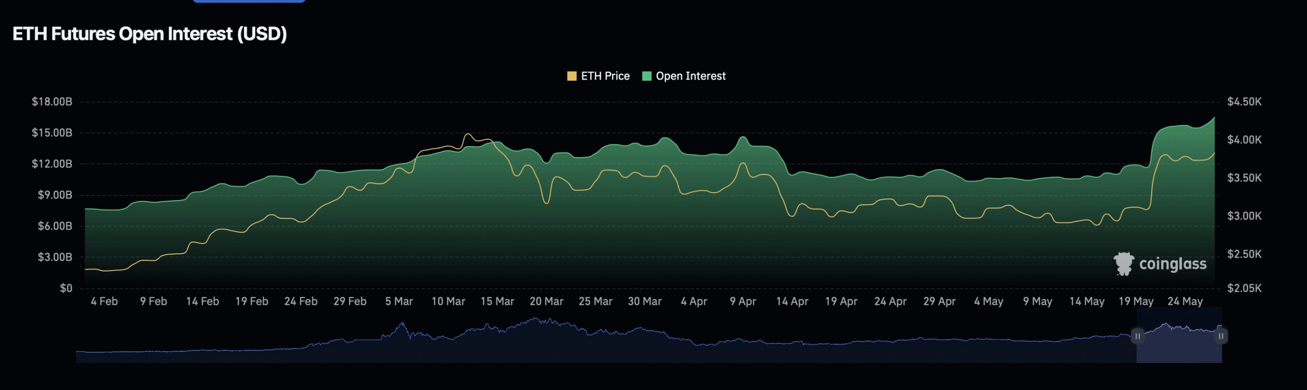 Moreover, Coinglass’ data Open Interest in Ethereum increased dramatically, signaling a derivatives market that is active and has high volumes of trading.